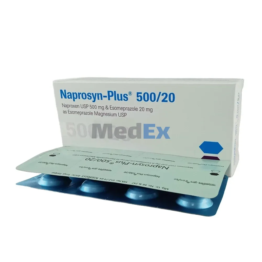 Naproxen is a NSAID with analgesic & antipyretic properties. The mechanism of action of Naproxen is to inhibit the prostaglandin synthesis. Esomeprazole is a proton pump inhibitor that suppresses gastric acid secretion by specific inhibition of the H+/k+ -ATPase in the gastric parietal cell by acting specifically on the proton pump, Esomeprazole blocks the final step in acid production, thus reducing gastric acidity.