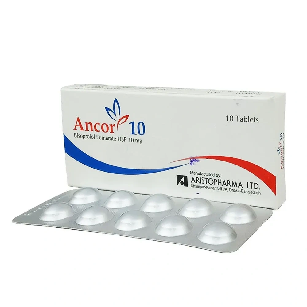 Ancor 10 mg Tablet is used to make your heart beat slower and your blood vessels wider. It's a medication for High blood pressure (hypertension), Chest pain (angina), and Heart failure.