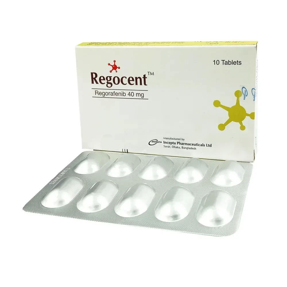 Colorectal Cancer: Regocent is indicated for the treatment of patients with metastatic colorectal cancer (CRC) who have been previously treated with fluoropyrimidine, oxaliplatin-and irinotecan-based chemotherapy, an anti-VEGF therapy, and, if RAS wild-type, an anti-EGFR therapy.