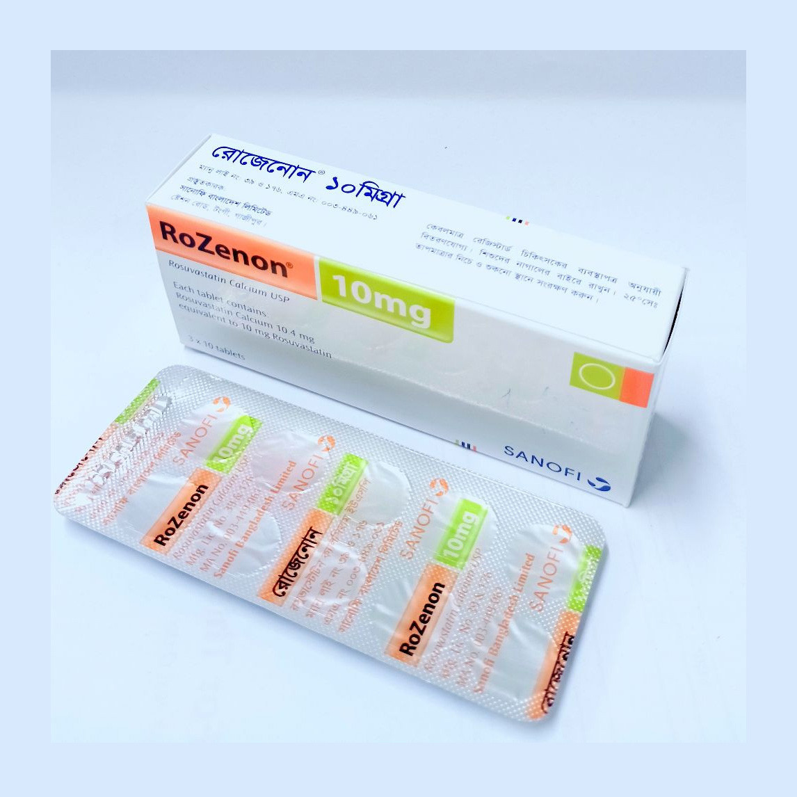 - RoZenon 10 mg Tablet treats high cholesterol by lowering "bad" cholesterol (LDL) and triglycerides (fats). It should be taken in addition to regular exercise and low-fat diet.