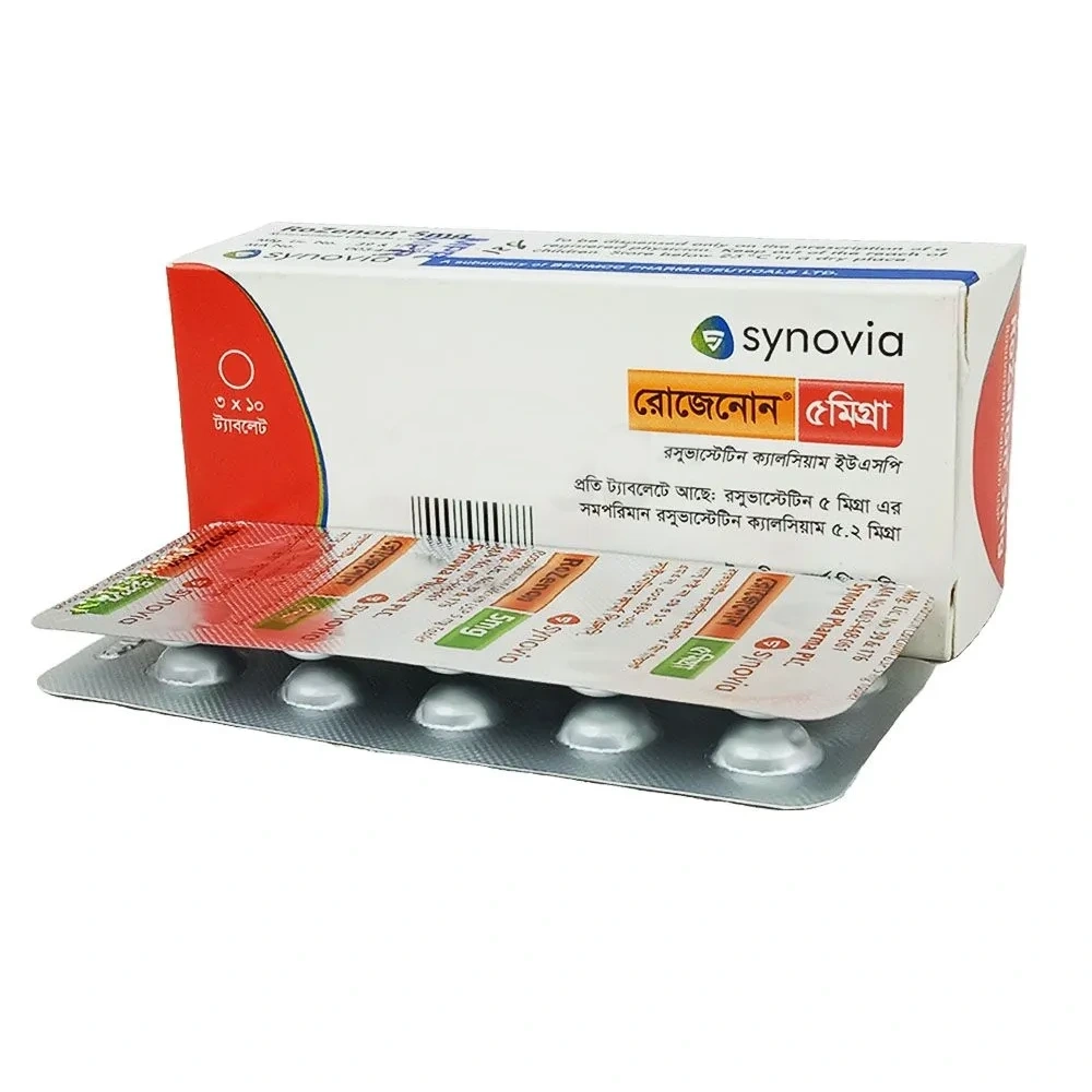 RoZenon 5 mg Tablet is a HMG-CoA reductase inhibitor drug which is helpful in lowering the cholesterol level and triglycerides in the body.
